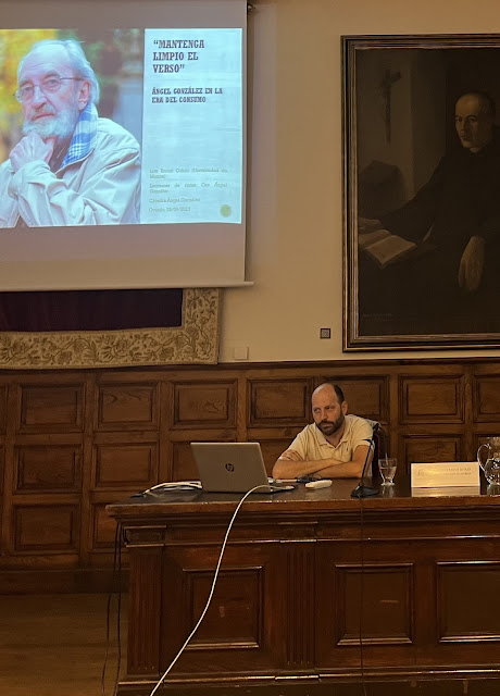 "Todavía aprendo", como dice el título de uno de los grabados de Goya. Escucho la conferencia de Luis Bagué Quílez sobre Ángel González en el Aula Magna y, aunque he ido anotando continuas discrepancias, cuando al final se da paso al coloquio consigo, buen esfuerzo me cuesta, no decir nada.